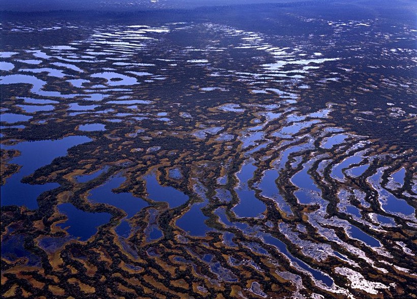 Если рассматривать эти четыре региона, то не возникает сомнений, что заболоченным может быть только центр Западной Сибири. Это район низин с повышенной влажностью, он занимает лидирующее положение по заболоченности. Общая площадь болот - около 800 000 кв км, в отдельных местах заболоченность достигает 70-80%, здесь хранятся запасы пресной воды.