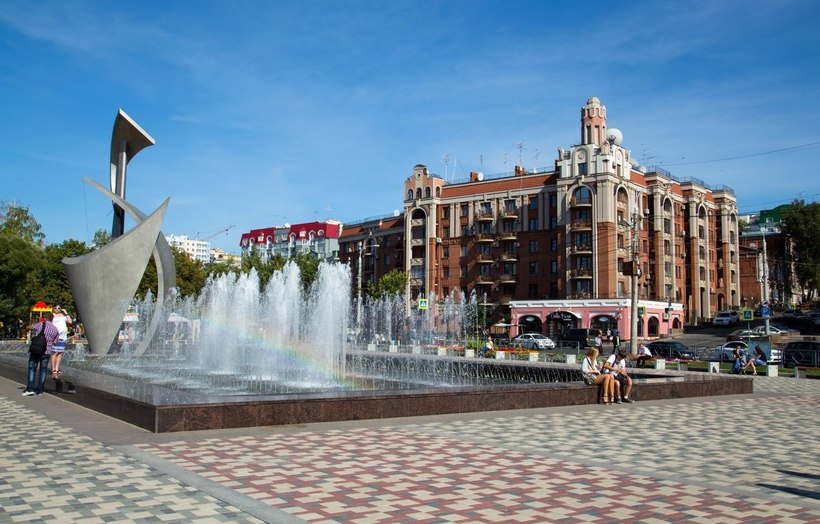 Остался в памяти красивый фонтан, подобный я видела только в Москве, конечно, больше по размерам. Во главе мне показалось, что развевается парус, так и вспомнилась сказка «Алые паруса».
