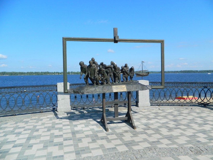 Рядом в виде картины установлена статуя «Бурлаки на Волге», да, кстати, набережная тоже находится на реке Волга.