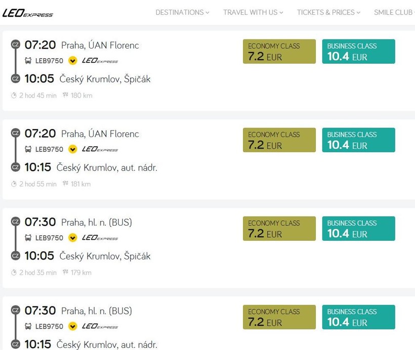 Из Праги в Чески-Крумлов на автобусе LEO Express