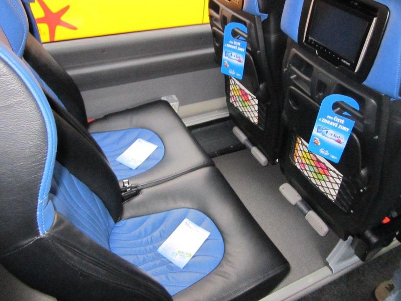 В автобусе есть wi-fi, но работает он только в Чехии, есть туалет, мини-бар с горячими напитками, ТВ и проводник.