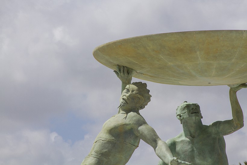 Нет, не так. Сначала мы увидели саму Валетту – с самолета. Наш рейс заходил на посадку так красиво, что всю столицу можно было обозреть. Потом мы сели на автобус, приехали на место своего заселения в Сент-Паулс-Бэй, погуляли по нему, а уже следующим упоительно солнечным апрельским днем отправились исследовать Валетту. И вот тогда, именно тогда открылся нам фонтан Тритон.