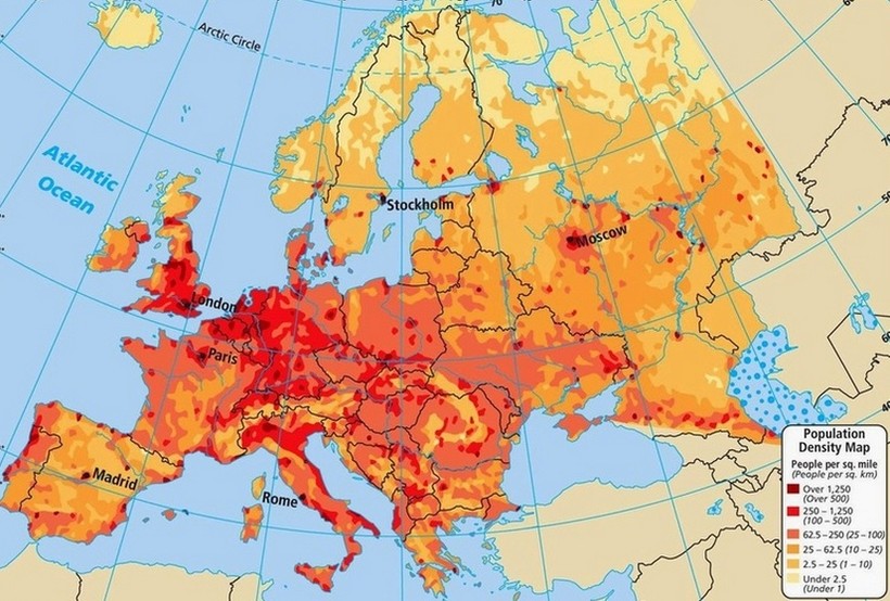 Плотность населения в Европе