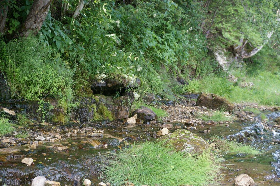 Крутой спуск к реке, проход в пещеру может быть опасен.