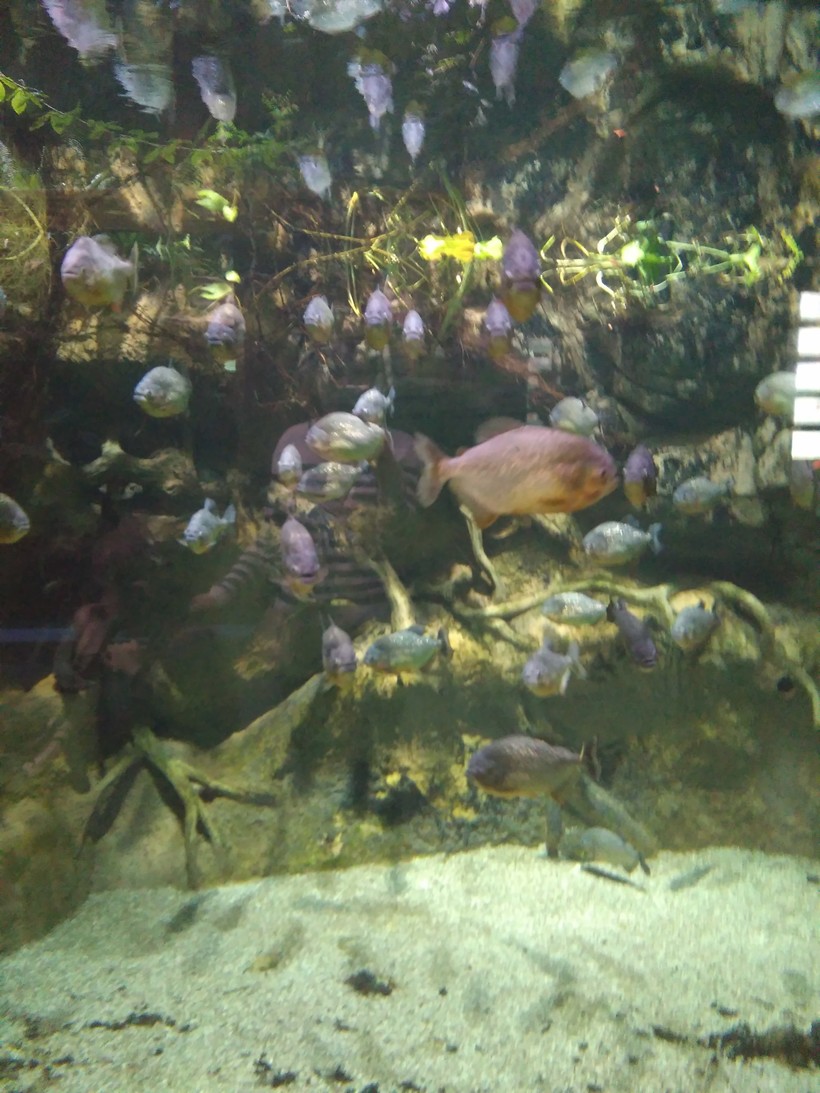 Меня кормление пираний не впечатлило, видимо они там и так сытые - на еду особо никто не бросился, вот в питерском океанариуме пираньи хищники, в обычном режиме даже иногда кажется, что рыбы и неживые, так, муляжи просто - еле движение челюстей разглядеть можно – но чуть только жертву почуют, все - на мелкие кусочки раздирали в момент.