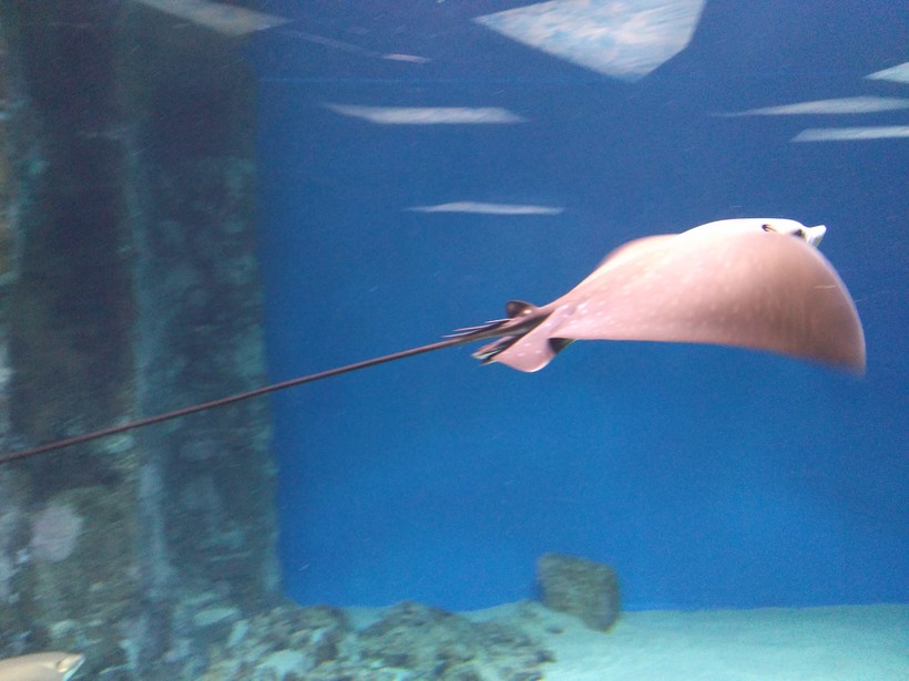 Знакомство с подводными обитателями начинается при входе в аквариум, там можно полюбоваться на карпов кои. А дальше интереснее, и коралловый риф, и акулы, и пираньи, и косяк рыб, и скатов можно потрогать (не электрических конечно), они на ощупь такие плотные, жирные (в плане массы) и слизистые, даже немного страшновато.