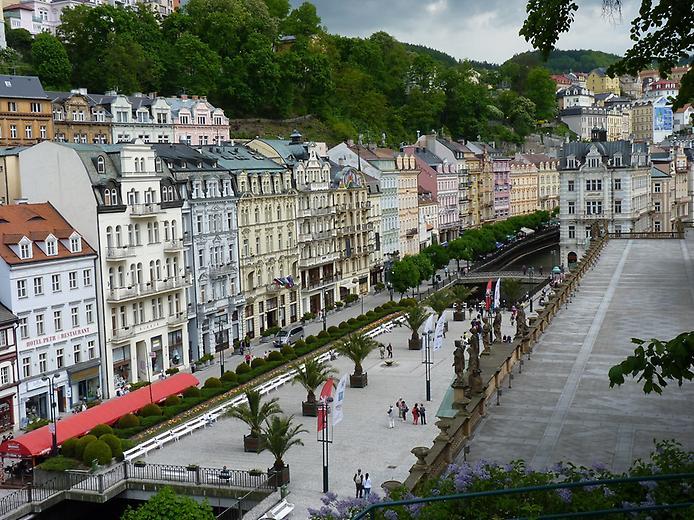 Местность в Карловых Варах холмистая, и многие санатории находятся на горке, что даёт отдыхающим не только роскошные виды из окна, но и, возможно, довольно крутые спуски и подъёмы. Впрочем, в таком случае обычно есть фуникулёры и бесплатные автобусы.