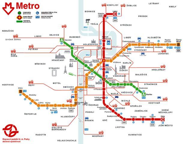 В метро в Праге три станции-перехода: Музей (с красной на зеленую линию), Мустек (с желтой на зеленую) и Флоренц, где находится вокзал, (переход с желтой на красную). Станции небольшие, как и переходы (в среднем минуты две).