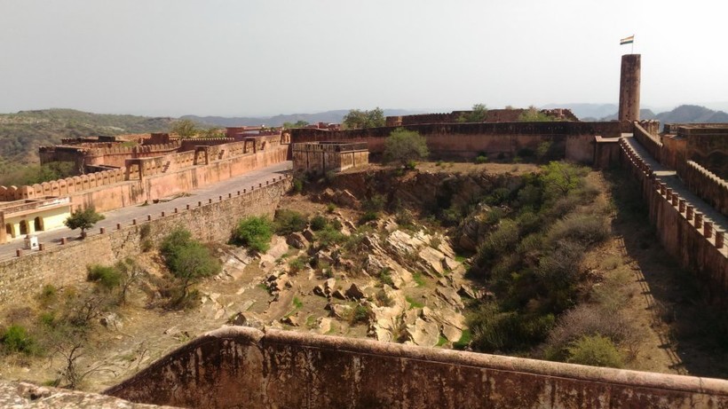 Я настроилась заранее на прекрасные виды по пути, хоть и было жарко. И, действительно, фотографии выходят очень интересные, так как чем выше поднимаешься, тем больше панорам открывается на окрестности, в том числе на оставшийся внизу Амбер форт, холмы и соседний форт Нахаргар. Там гулять можно долго и с удовольствием, дорожки тянутся на 3 километра!