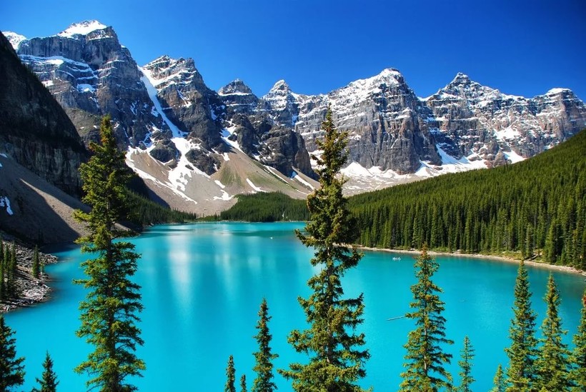 У меня на рабочем столе стоит пейзаж из канадской провинции. Если бы я не знала, что это именно Канада, то ни за что бы не догадалась: заснеженные горы, покрытые лесами, и удивительно синие реки и озёра, очень похожи на российские.