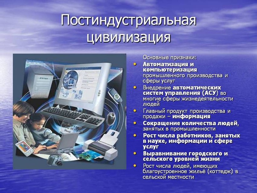 По моему мнению, еще рано говорить о наступлении эры постиндустриального общества. Тем более, на примере нашей страны, где все еще нет высокопроизводительной промышленности или инновационных услуг. Большую часть рынка труда у нас до сих пор составляют именно рабочие руки, а производственный сектор основан на природных ресурсах, так что говорить об уменьшении воздействия на природу пока рано.