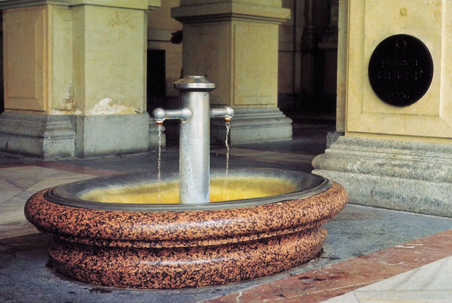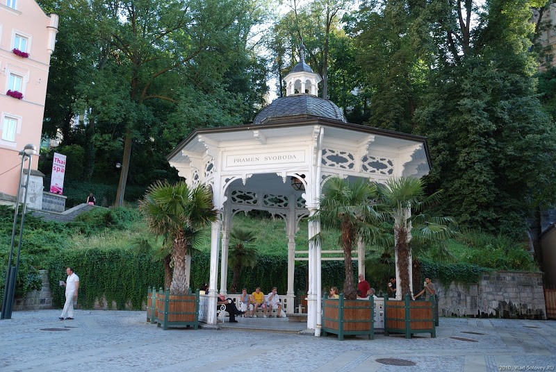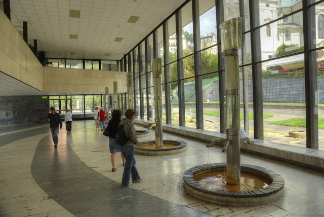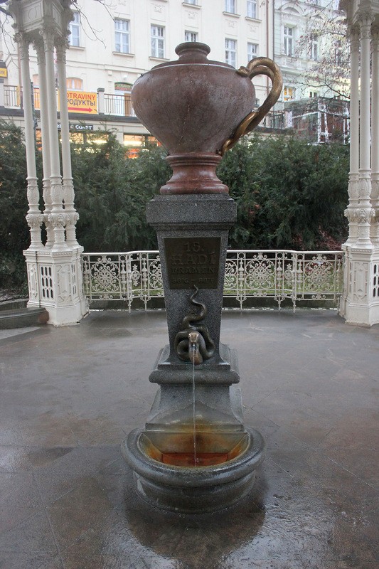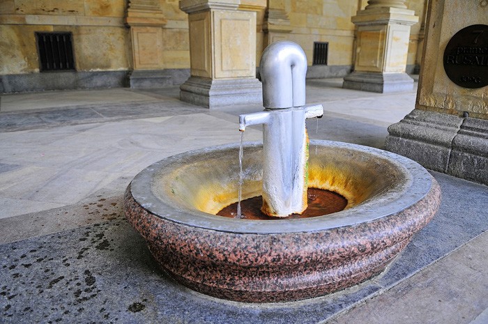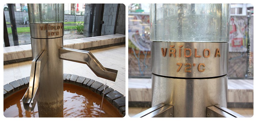 Источник №1, самый популярный, называется Вржидло (Vřídlo), что значит гейзер. Расположен он в Гейзерной колоннаде – самой современной и потому выбивающейся из общего изящного тона карловарских строений, относящихся в XIX веку.