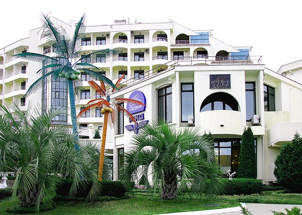 Подойдёт для любителей «выйти в люди», так как расположен очень близко к центру, но зато до моря идти далековато, метров 700 м. Хороший выбор для семейного отдыха: есть бассейн с горками, собственный пляж, детский центр.