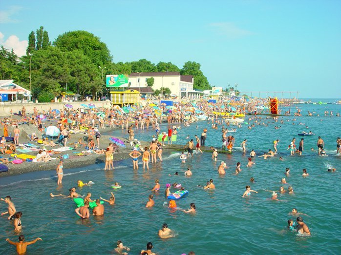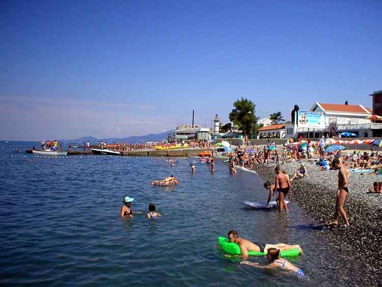 Самым интересным из пляжей в Сочи в плане инфраструктуры нам показался пляж Курортного городка – чистый, ухоженный, с огромным выбором водных развлечений, кафе и т.п., но в плане удобства проживания мы бы выбрали центральный Адлер. Ориентация курорта на более-менее бюджетный семейный отдых.