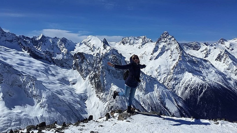 Быть рядом с горами и не поехать в них- это непростительная наглость. Вот именно так рассуждая в гостях в Кисловодске нынешним мартом, думала я, собираясь на Эльбрус. Собиралась компанией, но что-то пошло не так. И лучшей компанией, как показывает жизнь, у тебя остаешься ты. Но что-то пошло не так и внутри моей компании, видимо чистейший кисловодский воздух или просто внутренний блонд, но вместо Эльбруса я поехала на Домбай. Полагая, что это одно и тоже или где-то рядом. Только сидя в автобусе начала возвращаться ясность ума,бывает и такое. Ну, а что? Экскурсия ранняя, с шести утра забирают уже народ с Кисловодска, наверно и открылась какая-то чакра просветления. Не то чтобы, я не хотела на Домбай. Просто я там уже была. Ну, да ладно. Повторение- мать ученье, тем более была 10 лет назад. Значит автобус забирает в 6 утра. Цена вопроса -1500 рублей, отдавала, когда брала экскурсию в киоске. Плюс 300 рублей возили к храму в горах( это по желанию, как сказали, на месте оказалось, что нет), и 1200, если подниматься до самой высокой точки Домбая на всех уровнях канатки.