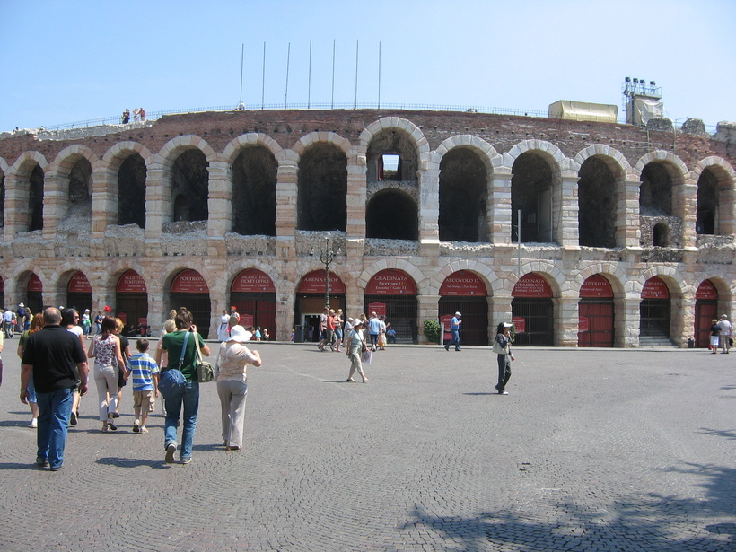Думаю, что концерты вполне можно слушать и с площади Бра, сидя за столиком кафе. Не обязательно покупать билет в Арену. Крыши у Арены нет и должно быть все хорошо слышно. Верона мне понравилась во многом именно из-за прекрасной и многообразной площади Бра, все-таки домик Джульетты можно посетить один раз и больше там делать нечего. А на площади Бра можно проводить гораздо больше времени и она не надоест.