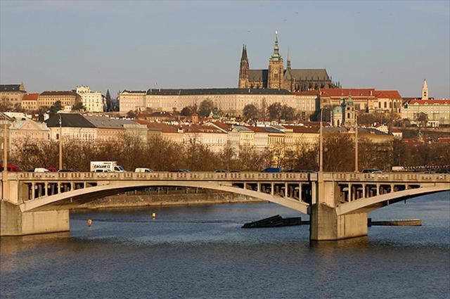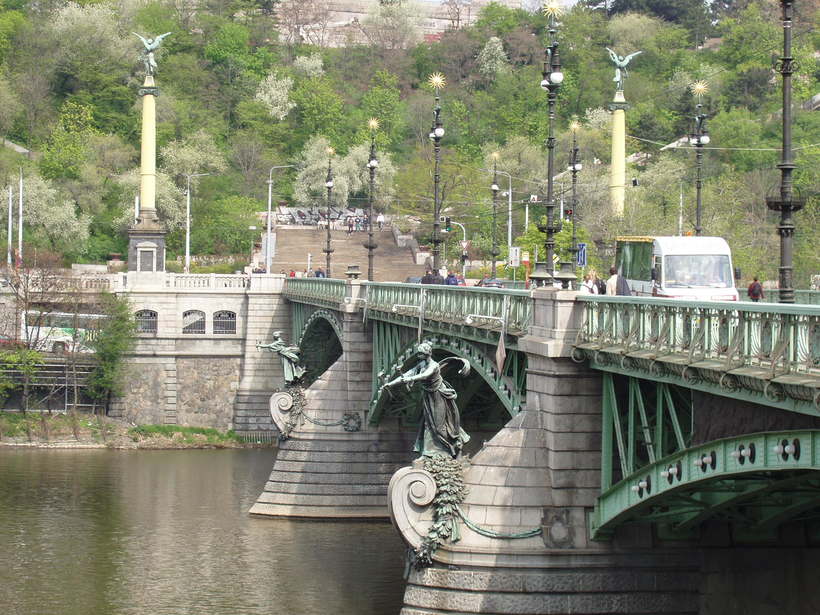 Второй – Чехов мост, названный в честь писателя А.П.Чехова. Стиль этой конструкции очень отличается от Карлова, но и тот, и тот - очень красивые мосты. Прага не располагает более короткими мостами, по которым ездят трамваи, чем этот.