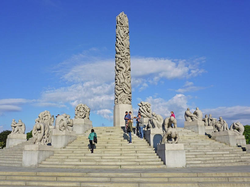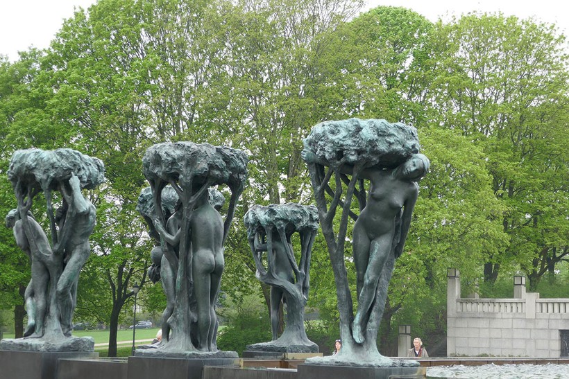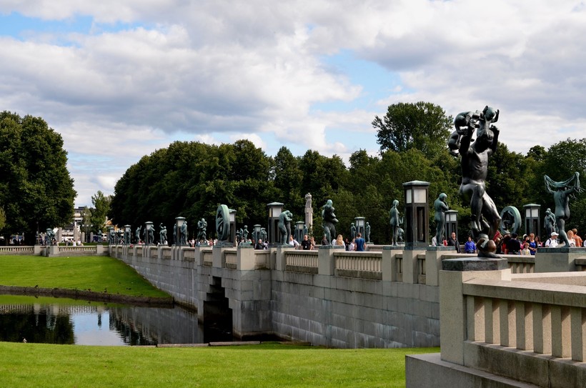 Главное ради чего сюда приходят туристы – это бесконечное количество скульптур Густава Вигеланда из бронзы, гранита и кованого железа, которые он создавал около 40 последних лет своей жизни. Но весь этот природно-культурный комплекс выглядит так, как будто парк создан для скульптур, а не скульптуры установлены в парке, настолько умело автор вписал их в окружающий ландшафт. И это несмотря на то, что Фрогнер парку гораздо больше лет.
