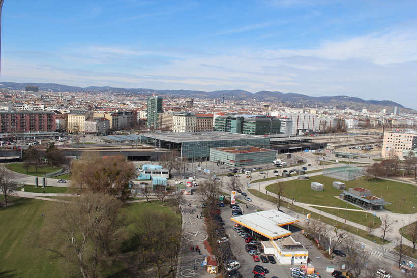 Станция "Пратерштерн" и рядом пересадка на другой вид транспорта. (Вид с колеса обозрения).