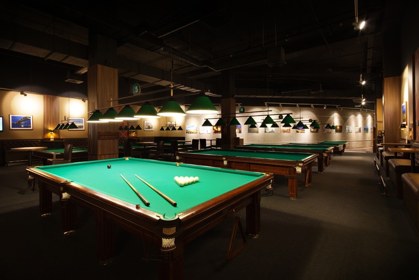 Этажом ниже бильярдная - просторная, столов также хватит всем. Можно зависнуть часами. Иногда даже зависть хватает о тех, кто работает в Москва-Сити: в обеденный перерыв можно отвлечься и приятно провести время не только с тарелкой супа. Хотя, с другой стороны, наверняка непросто “проскользнуть” мимо витрин зазывающих к себе магазинов.