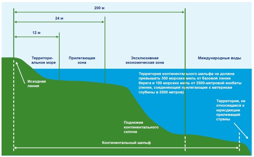 Ещё одна интересная особенность, о которой я узнал, это возможность сооружения на шельфе искусственного острова, но если его возведут за пределами 200 миль, то придется Конвенции ООН отчислять деньги. Также там упоминается про взнос натурой Международному органу по морскому дну. Я так и не понял, как именно придется расплачиваться натурой.