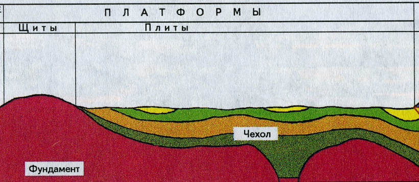 Верхний ярус не полностью перекрывает нижний, и некоторые участки кристаллического фундамента выступают на поверхность. Именно эти «обнаженные» области и называются щитами платформы.