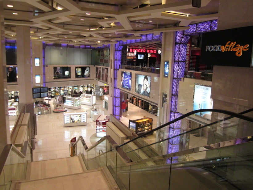 Как и следовало ожидать, в аэропорту даже ночью много всякой торговли дороговатыми товарами вроде косметики и одежды, а еще есть "Food village" на втором этаже. Выбор заведений общественного питания солидный. Самое банальное - "Бургер Кинг" и "Макдоналдс", а еще есть пекарня премиум-класса, ирландская закусочная, итальянская кофейня, французское кафе, ресторан иранской кухни.