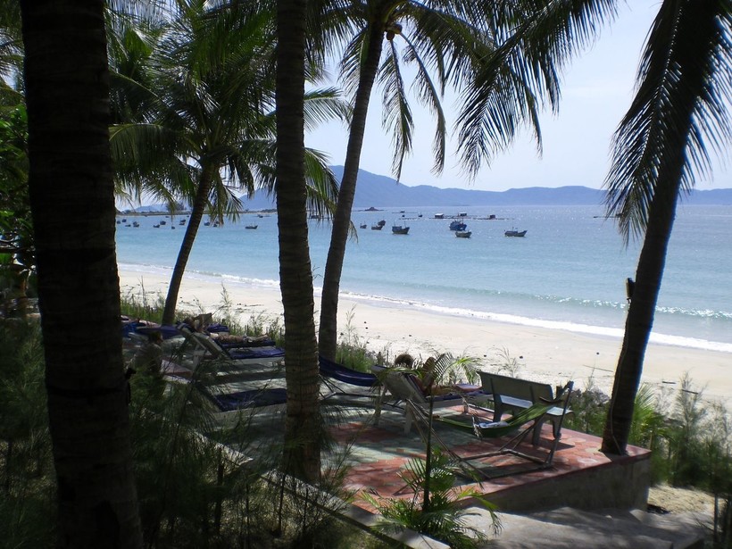 Местоположение. Пляж находиться в пятидесяти километрах от Нячанга. Из-за своей отдалённости от города, здесь совсем немного людей. Мы доехали сюда на байке, любуясь по дороге на живописную дорогу.