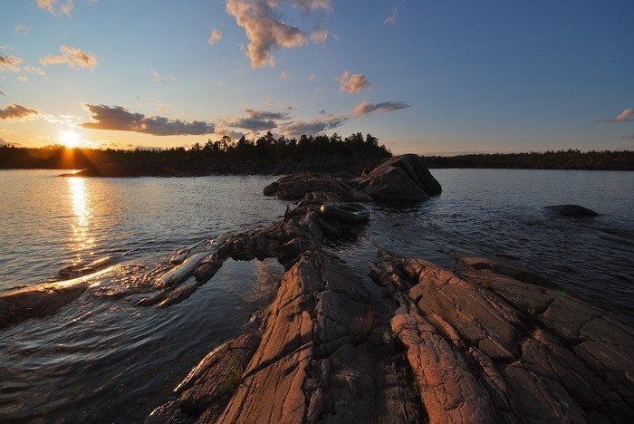 Летом 2016 года, мне посчастливилось побывать на Ладоге. Это был полный впечатлений лодочный поход, открывший мне все прелести дикой жизни. Место, само по себе, очень красочное, но особенно мне запомнились ночевки у костра на шхерах — маленьких островках, покрытых растительностью.