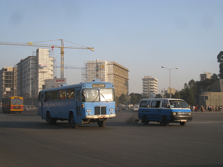Как мы узнали, во время голода в Эфиопии СССР очень хорошо помогал им и там до сих пор сохранились эти машины, которым даже по 38 лет! И они там очень сильно ценятся как ретроавтомобили. Они в моде. :) Водитель попался разговорчивый, да и к тому же хорошо владеющий английским языком. По прямой дороге улиц Эйрпорт роуд и Африка авеню да еще и без пробок 14 минут прошли совсем незаметно. В целом, из-за большого налога на транспорт автомобили мало у кого есть, поэтому им чужды пробки.