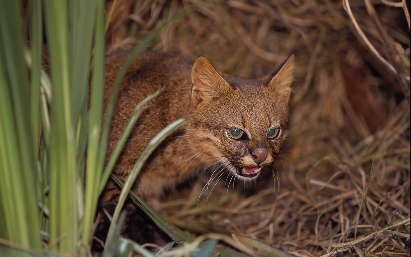 Но хищники тут тоже есть. Например, это пампасская кошка. Она очень похожа на привычных нам домашних котеек, разве что, мордочка повыразительнее да шкурка попушистее.