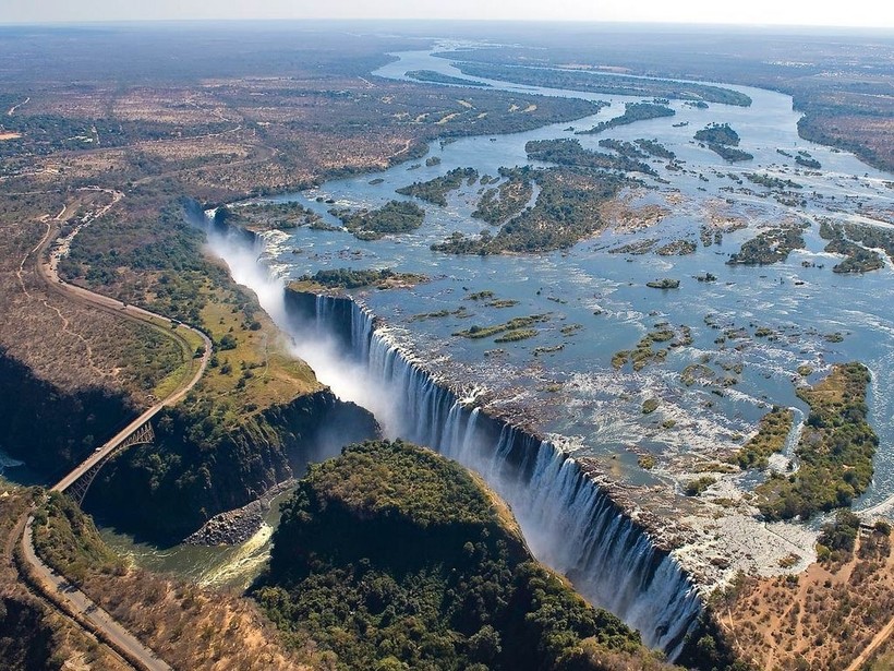 Крупнейший водопад, названный в честь королевы Виктории, находится на Африканском континенте на границе двух государств - Зимбабве и Замбии. Является неповторимым явлением природы, имеет высоту более 100 метров и ширину более 1.5 км. Водопад образован водами крупной реки Замбези. Замбези является четвертой по размеру рекой из стран Африки, течет по территории нескольких государств континента.