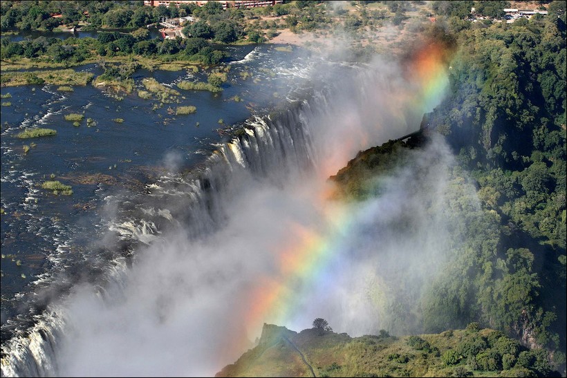 Это место по праву считается одним из природных чудес мира, а расположено оно по течению Замбези, на границе живописной, но весьма бедной Зимбабве. Его вид просто великолепен: в клубах водяного тумана каждую минуту обрушиваются миллионы литров воды! Не удивительно, что среди местных племен его называют «грохочущий дым».