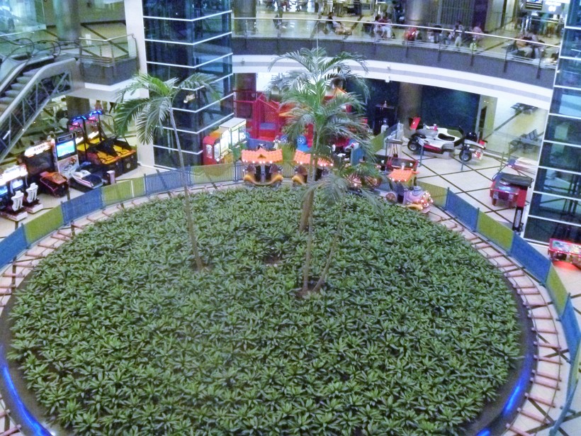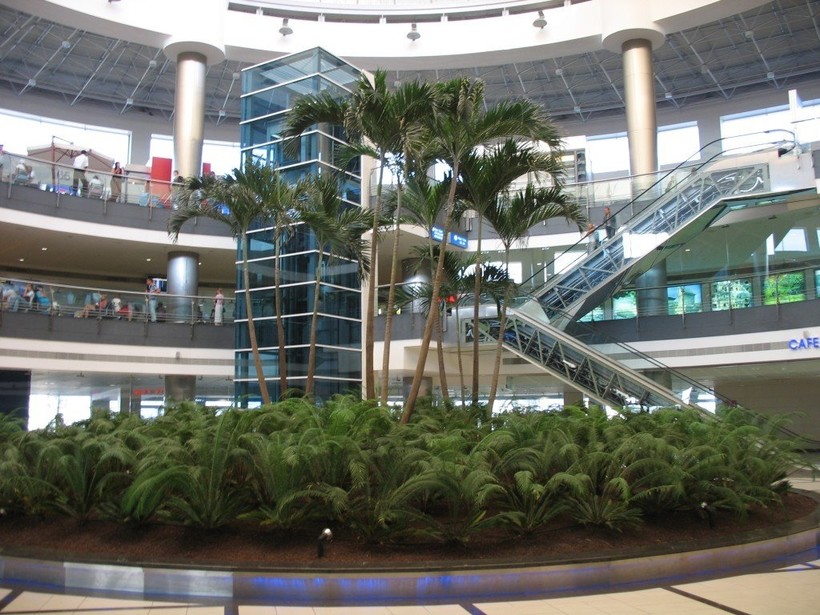 Больше всего в международном терминале 2 мне нравится его дизайн и оформление. На первом этаже, вокруг круглой клумбы с живыми пальмами днем катается декоративный паровозик, которым можно любоваться с любого этажа терминала. На каждом этаже есть по несколько залов ожидания, туалет и множество магазинов duty-free. Добраться на любой этаж можно как по эскалатору, так и на прозрачном стеклянном лифте.