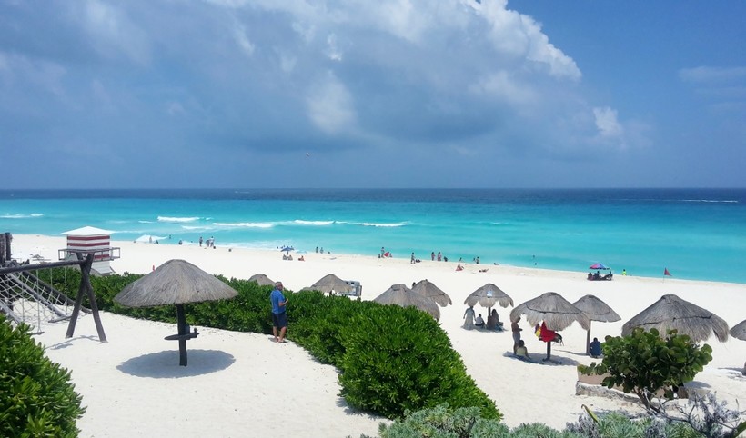 Delfines. Мой любимый пляж, но, можно сказать, самый дальний, там "больше воздуха", многоэтажные отели не нависают над пляжем, как на остальных, также есть "зона активного отдыха" - различные тренажеры для взрослых и развлекухи для детей, именно к этому пляжу туристы ездят фотографироваться с разноцветными буквами CANCUN на фоне бирюзового моря; единственный недостаток - нет точек общепита, не считая одиночных торговцев, которые продают напитки и мексиканский фаст-фуд, поэтому здесь отдыхает много местных жителей, которые устраивают небольшие пикнички из того, что с собой привезли.