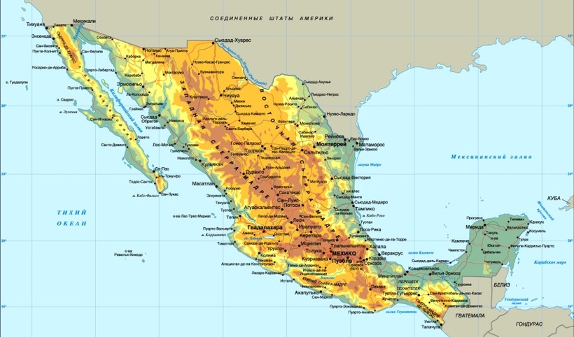 Самые крупные — области складчатости, сложенные вулканическими породами. Они богаты серебром и золотом, цинком, свинцом, медью и другими элементами. В целом Мексику можно назвать страной, которая располагает запасами почти всех ископаемых. Особо отмечу крупный нефтегазоносный бассейн Мексиканского залива.