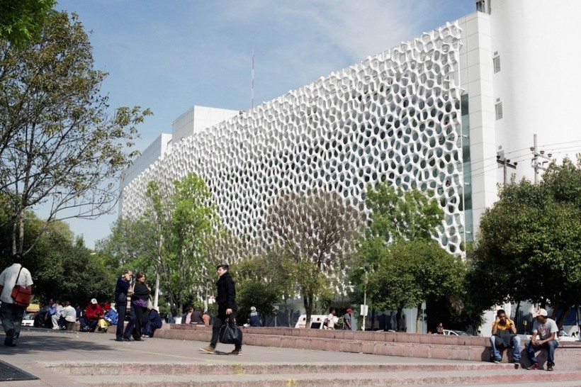 Интересна реализованная задумка специалистов-экологов. Облицовочную плитку здания больницы покрыли, как сеткой, диоксидом титана, который вступает в химическую реакцию с солнечным светом и уменьшает вредное воздействие загрязняющих веществ.
