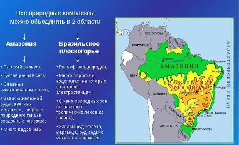 Насколько я помню из уроков географии, в Бразилии сложились аж 4 уникальных природных зоны, которые на сегодняшний день полностью не исследованы. Причем, разница между ними заключается в том, что на севере расположены более влажные, а на юге более засушливые. Однако всего одна зона занимает наибольшую территорию.