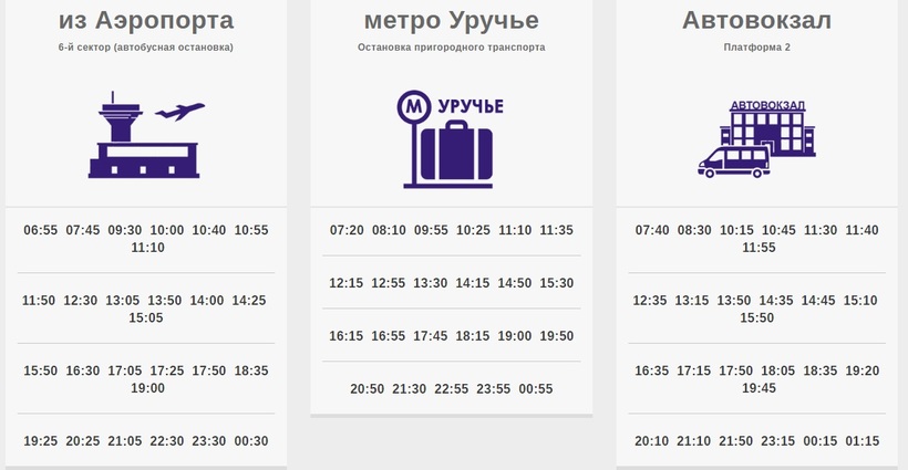 На рейсовом автобусе №300Э из аэропорта можно уехать практически в любое время суток. Ниже размещено расписание по маршруту аэропорт-автовокзал-аэропорт.