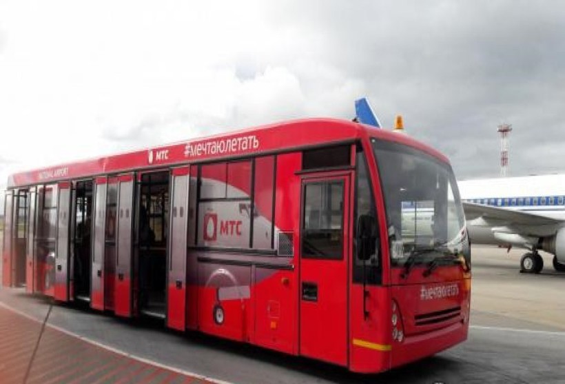 После посадки самолета пассажиров от трапа забирает автобус и везет к терминалу.