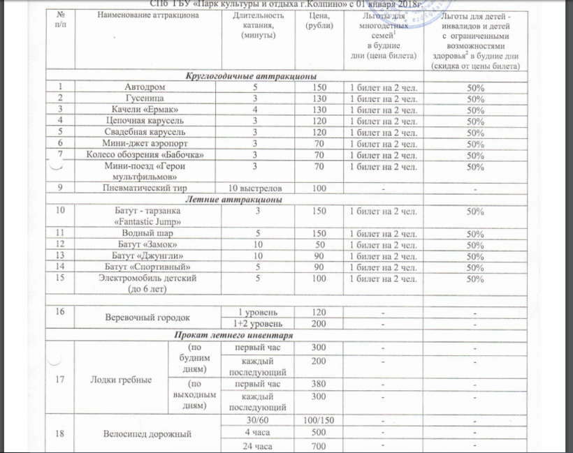 сколько стоит вход в парк культуры и отдыха Колпино?