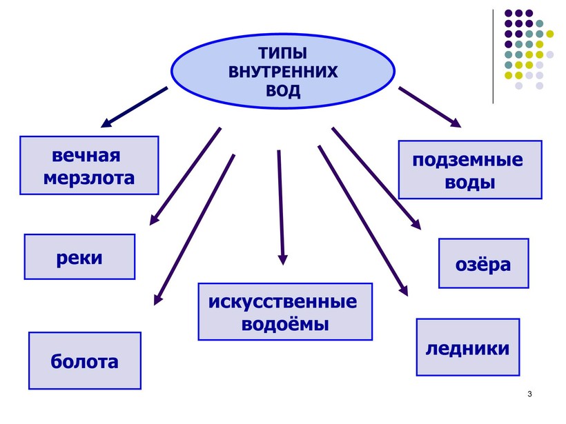 Назовите все виды внутренних вод. Охарактеризуйте роль каждого из них в природе и хозяйстве.