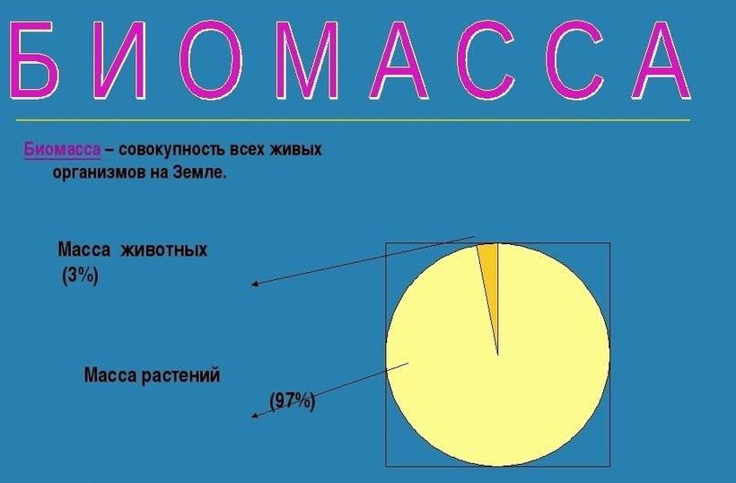 Учёные подсчитали, что общее количество биологической массы на Земле равняется 1,3 трлн тонн (сухого вещества) и сосредоточена она в основном на суше.