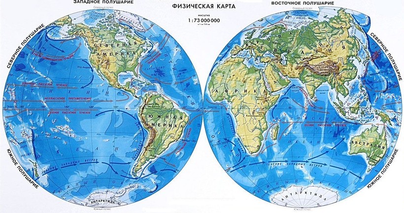 Принято считать, что наша планета разделена на два полушария — Западное и Восточное. Наша страна расположена в Восточном, а если быть более точным, то на самом большом континенте в мире. Хоть Евразия значительно превосходит остальные материки в размерах, но полушарие, где она находится нельзя назвать континентальным, ведь вода значительно преобладает над сушей.