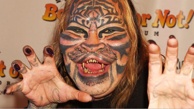 Денис Авнер — это самая жуткая женщина-фрик в образе кошки. Ее лицо покрыто цветными татуировками, а для пущего сходства с семейством кошачьих губа разрезана на 2 части. Кроме того, для полного соответствия образу Денис заточила свои зубы на манер клыков, вживила в область лба имплантаты и «украсила» носогубный треугольник металлическими туннелями. В них она вкручивает искусственные усы, а в глаза вставляет кошачьи линзы.