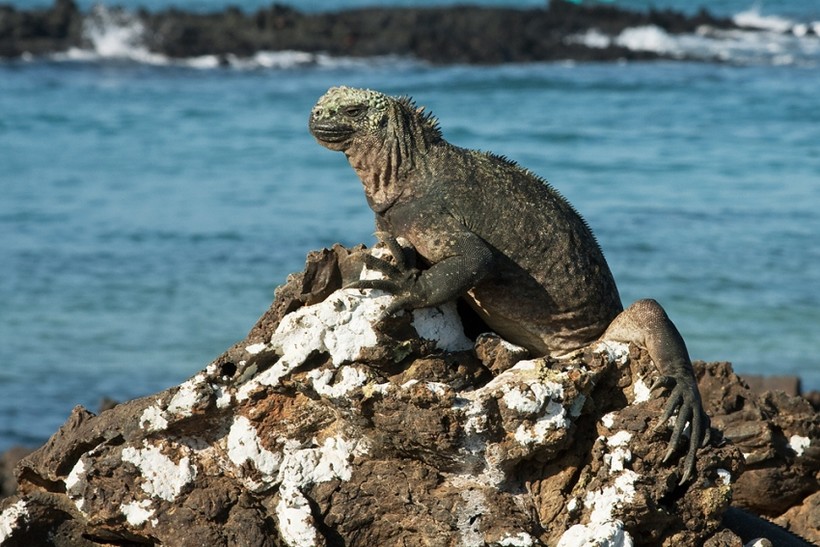 Морская игуана. Единственный вид морских ящериц на нашей планете. Предположительно, из-за недостатка пищи на суше, это животное стало питаться водорослями. Отличительная черта — специальные железы, благодаря которым, животное избегает переизбытка соли извергая излишки через ноздри.