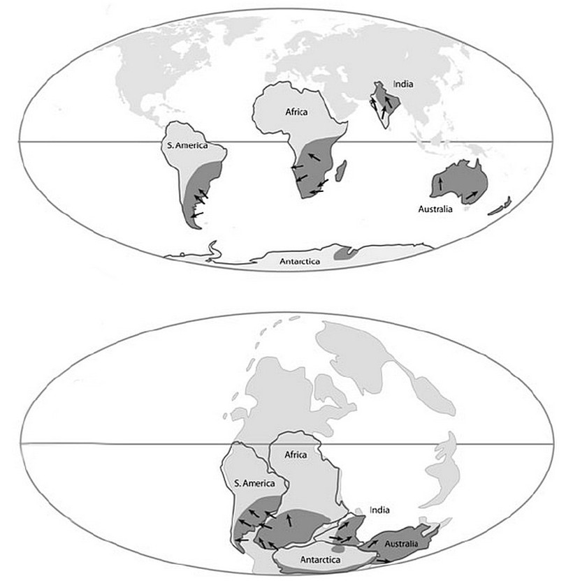 Есть такая теория у учёных, что когда-то миллионы лет земля была одним материком. Из-за какого-то глобального катаклизма землю «разорвало» на материки и острова. Именно так объясняют учёные почему на очень далёких материках и островах можно встретить родственную флору и фауну.