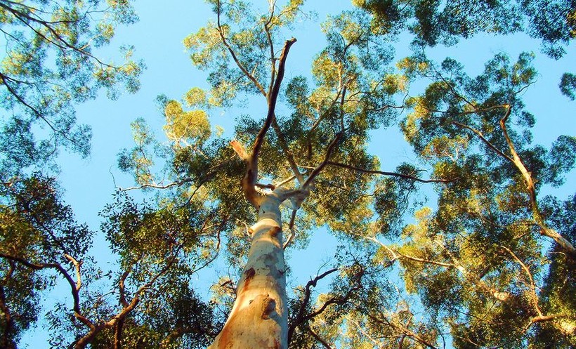 Первое — это большое дерево семейства лиственных, способное вырастать до 90 метров в высоту. Ценится за гладкую кору, которая имеет розовые и серые оттенки.