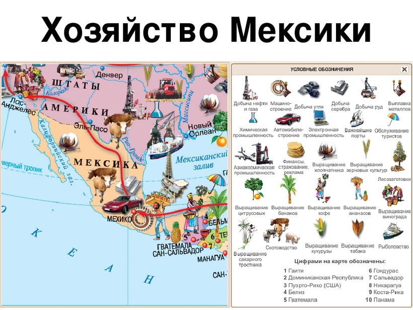 1. Размещение населения. Большинство населения живет в агломерации Мехико, а значит, и большое количество хозяйственных комплексов будет формироваться там.