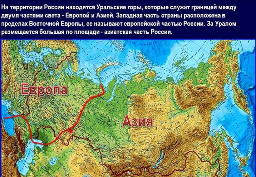 Стоит отметь, что эта граница делит не только РФ на две части, европейскую и азиатскую, но она же и разграничивает две части света — Европу и Азию. По обыкновению, данная граница пролегает через следующие точки (в порядке с севера на юг):